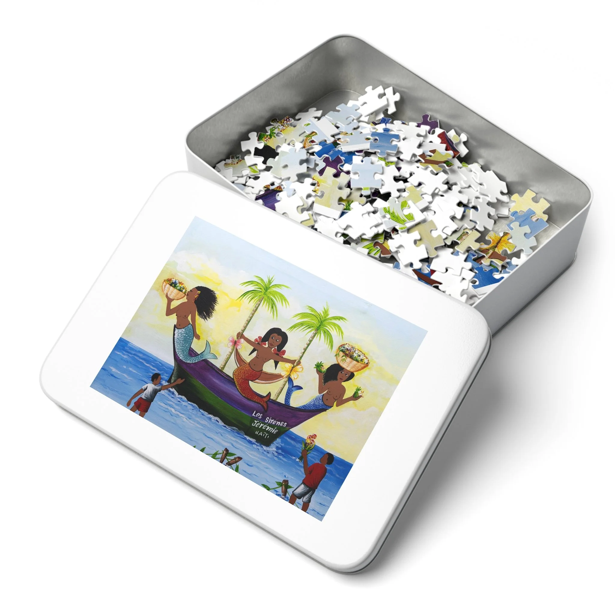 Les Sirenes Haitian Mermaid Jigsaw Puzzle with Tin – Colorful Caribbean Art Puzzle